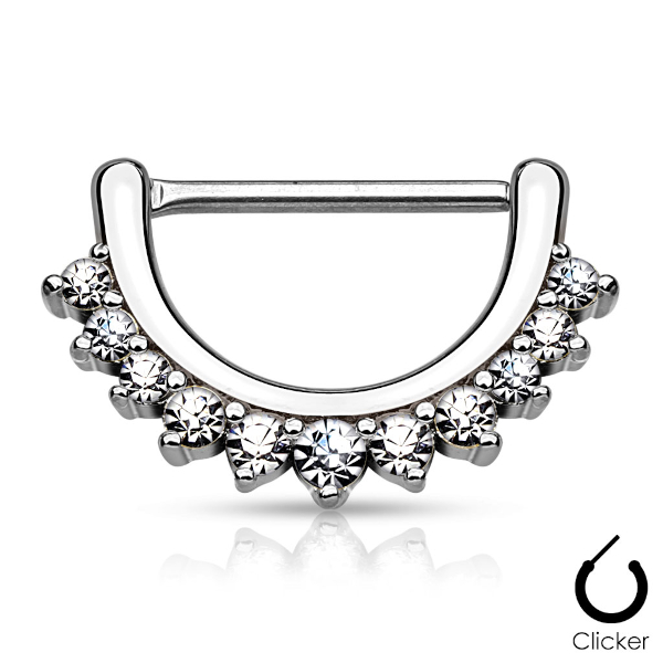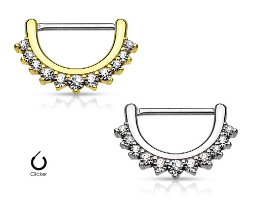 Кликер для груди из хирургической стали 316L латунной декоративной частью украшенной фианитами.