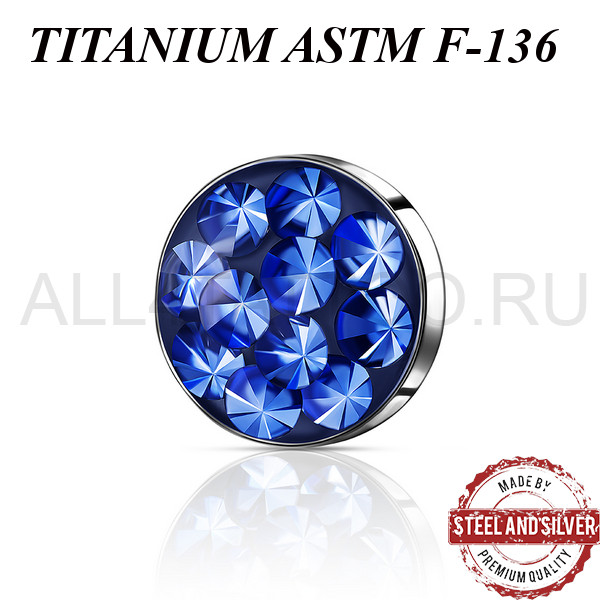 Накрутка из имплантационного титана ASTM F-136. Украшена премиальными кристаллами. Резьба накруток 1,2мм подходят к микродермалам и украшениям с внутренней резьбой толщиной 1,6мм.