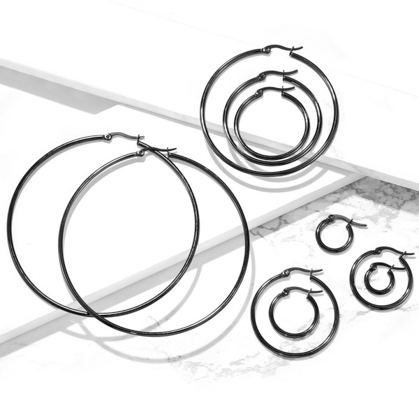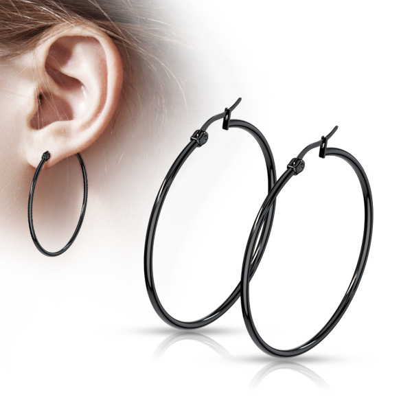 Серьги из хирургической стали 316L чёрным IP покрытием. В таблице указан внешний диаметр колец.