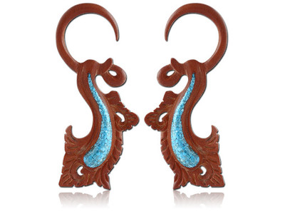 Фигурные спирали из древесины палисандра со вставкой из бирюзы.