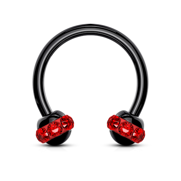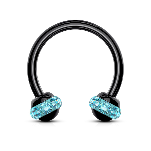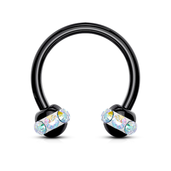 Циркуляр из хирургической стали 316L с чёрным PVD покрытием. Шарики украшены стразами.