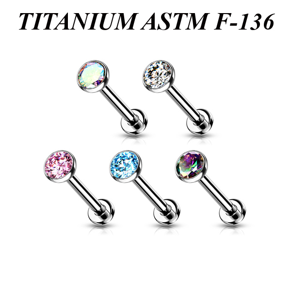 Безрезьбовой лабрет из имплантационного титана 6Al-4V-Eli ASTM: F-136. Украшен вставкой с фианитом.