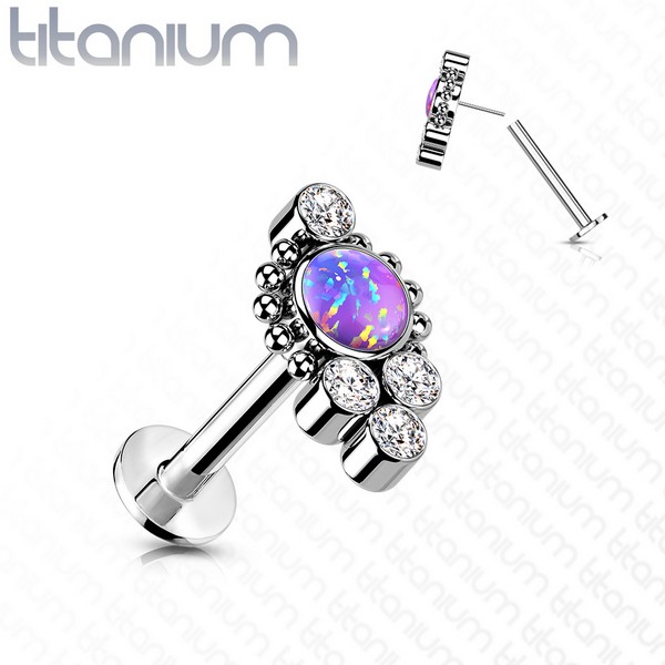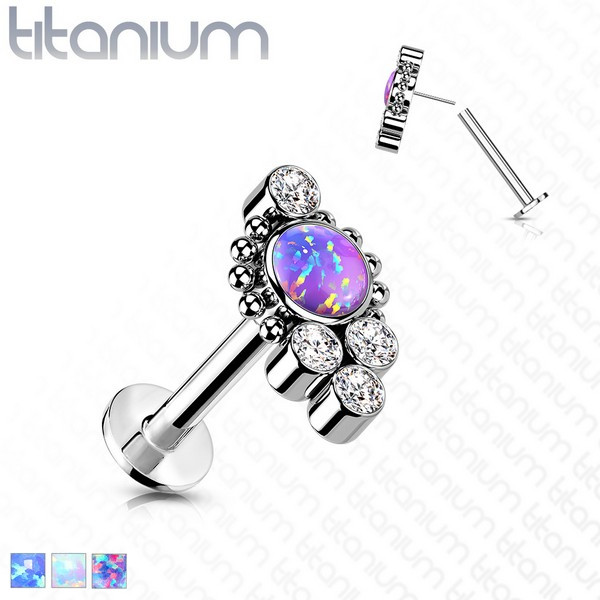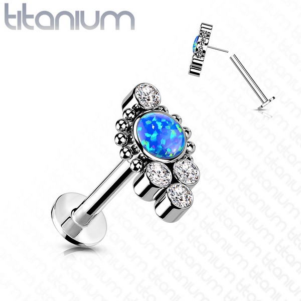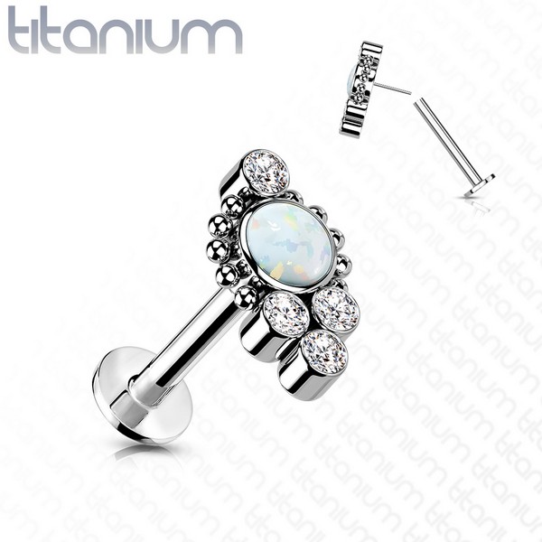 • Безрезьбовой лабрет из титана с кластером страз и опала