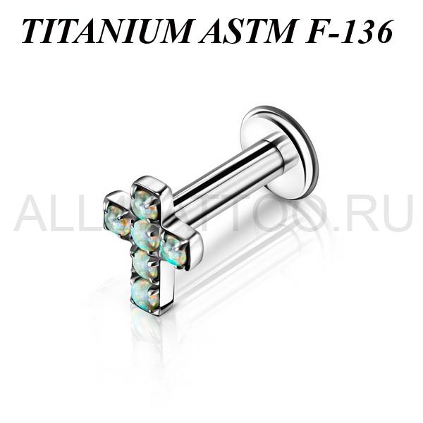 • Лабрет из титана Ti Metal опаловый крест