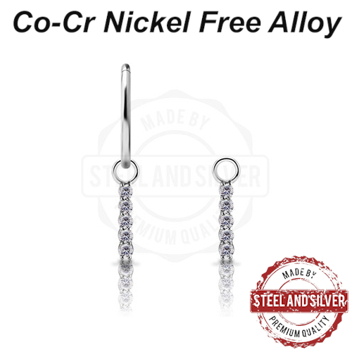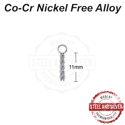Подвеска из сплава кобальт-хрома, без содержания никеля. Украшена сетом прозрачных премиальных фианитов. Подходит для колец толщиной не более 1,6мм.