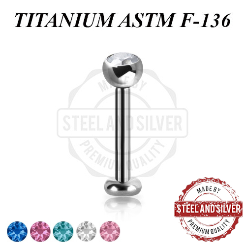 Лабрет с внутренней резьбой из имплантационного титана 6Al-4V-Eli ASTM: F-136. Украшен накруткой с кристаллом Premium Cubic Zirconia.