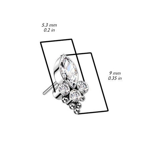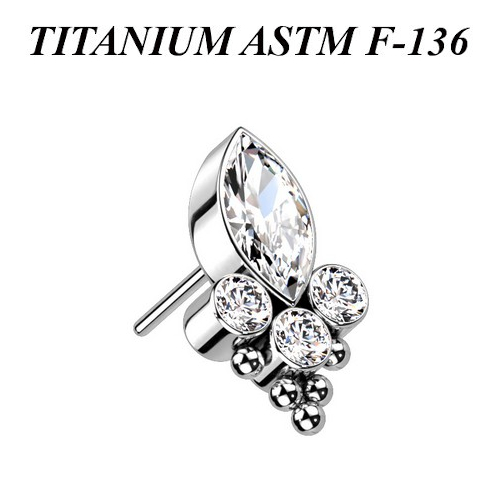 Вставка из имплантационного титана 6Al-4V-Eli ASTM: F-136 для безрезьбовых украшений. Кластер украшен прозрачными фиантиами.