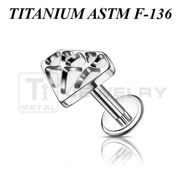 Лабрет из имплантационного титана 6Al-4V-Eli ASTM: F-136 с внутренней резьбой. Украшен накруткой в форме кристалла. Размер накрутки: 7х5мм.