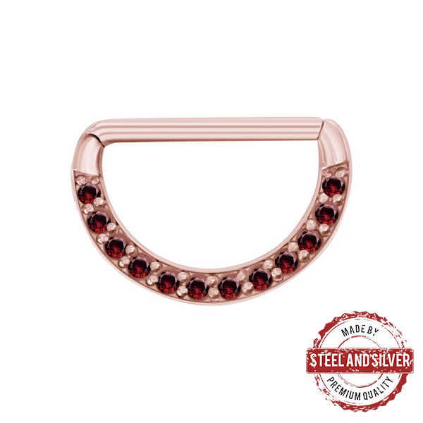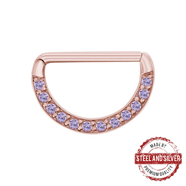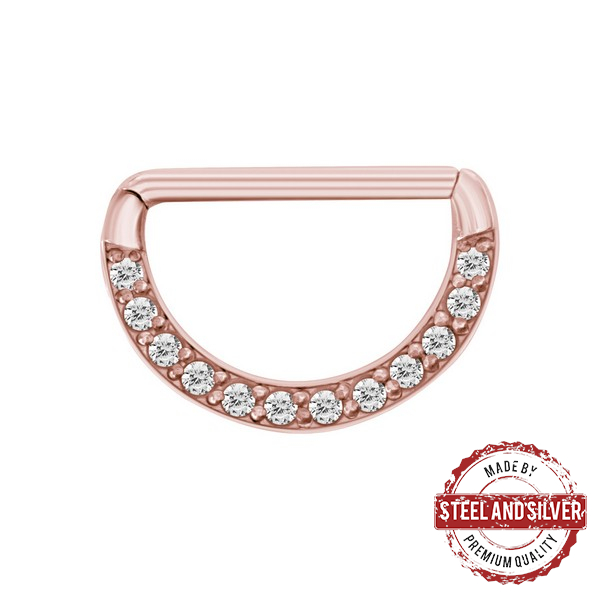 Кликер для груди из хирургической стали 316L с PVD покрытием розового золота. Украшен кристаллами Cubic Zirconia.