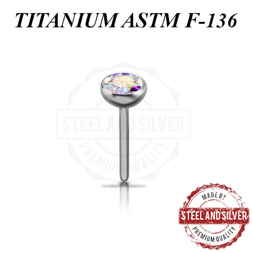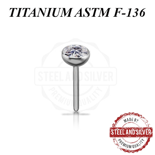 Вставка из имплантационного титана 6Al-4V-Eli ASTM: F-136 для безрезьбовых украшений. Украшена Premium Zirconia.