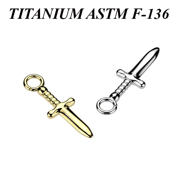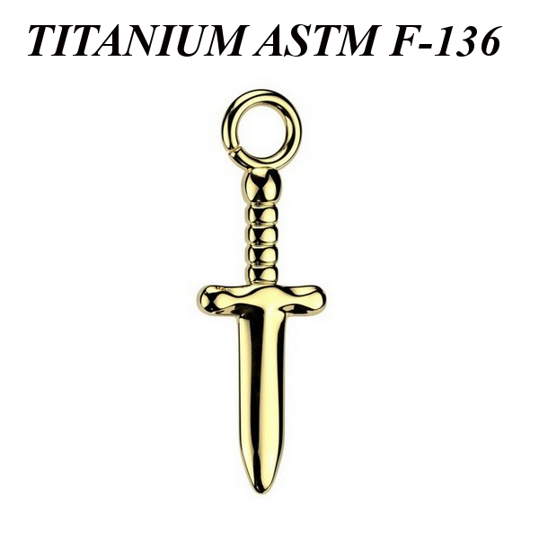 Подвеска из имплантационного титана 6Al-4V-Eli ASTM: F-136. Представлена в двух вариантах: классическая титановая и с золотым PVD покрытием. Размер декоративной части: 11х4,5мм. Подходит для украшений толщиной не более 1,6мм.