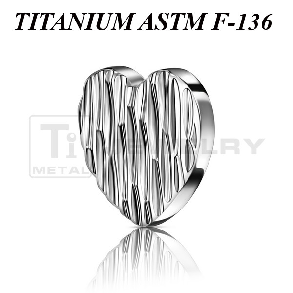 Накрутка из имплантационного титана 6Al-4V-Eli ASTM: F-136 в форме сердца с рельефной поверхностью. Представлена в двух вариантах: классическая титановая и с золотым PVD покрытием. Подходит для украшений с внутренней резьбой толщиной 1 и 1,2 мм. Размер накрутки: 5,6х5мм.
