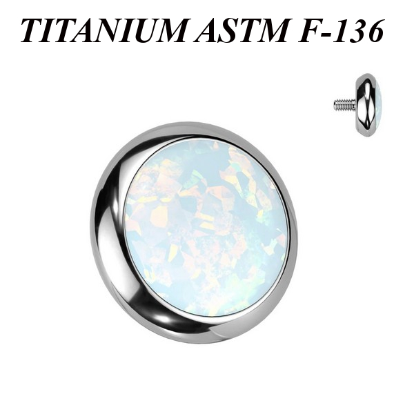 Накрутка из имплантационного титана 6Al-4V-Eli ASTM: F-136 с лабораторным опалом. Подходит для украшений с внутренней резьбой.