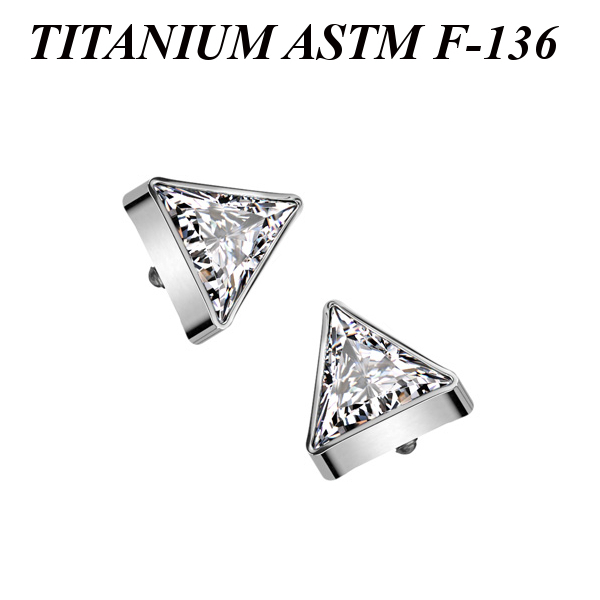 Накрутка из имплантационного титана 6Al-4V-Eli ASTM: F-136 с треугольным фианитом. Длина грани: 4,7мм. Подходит для украшений с внутренней резьбой толщиной 1 и 1,2 мм.