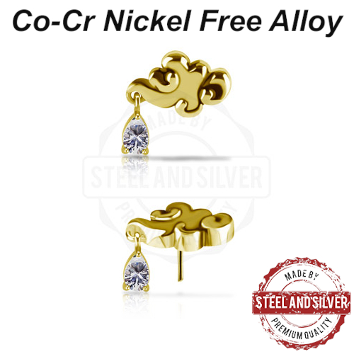 Вставка для безрезьбовых украшений из сплава кобальт-хрома, без содержания никеля. Украшена кристаллом Premium Cubic Zirconia. Представлен так же вариант с 18-ти каратным золотым PVD покрытием. Размер декоративной части: 8,4х8мм.